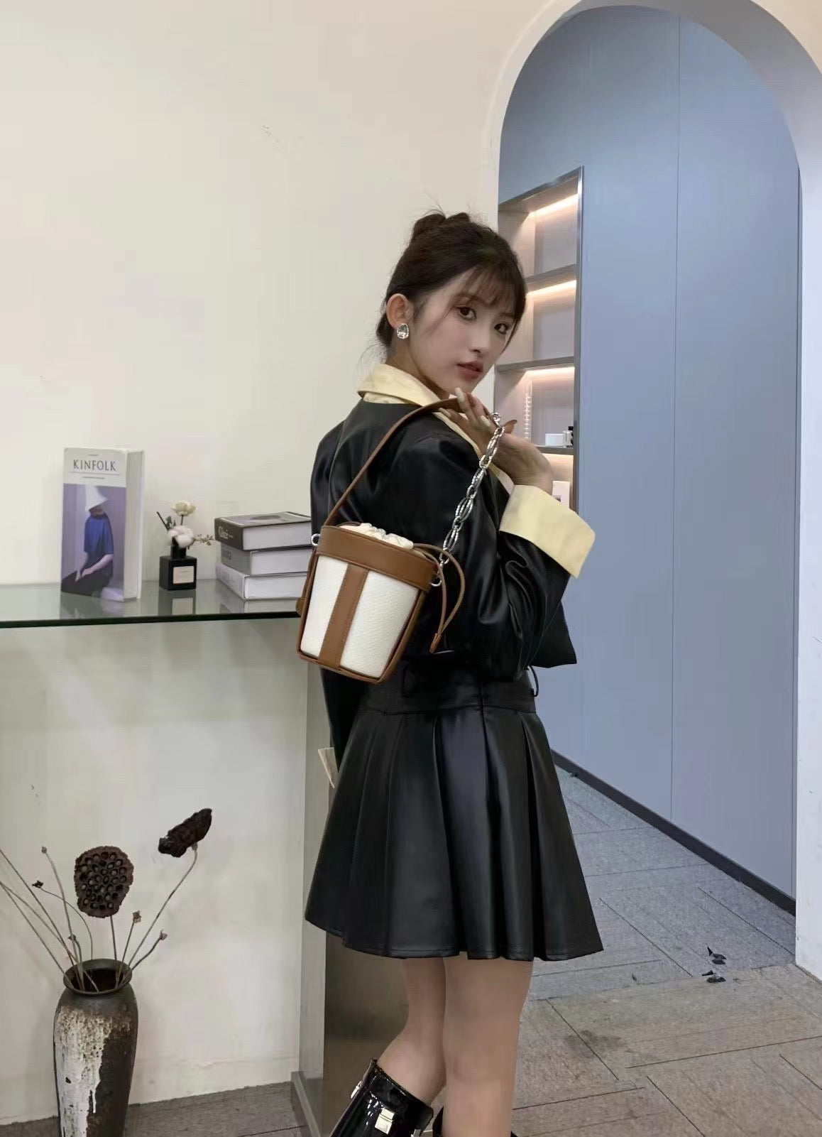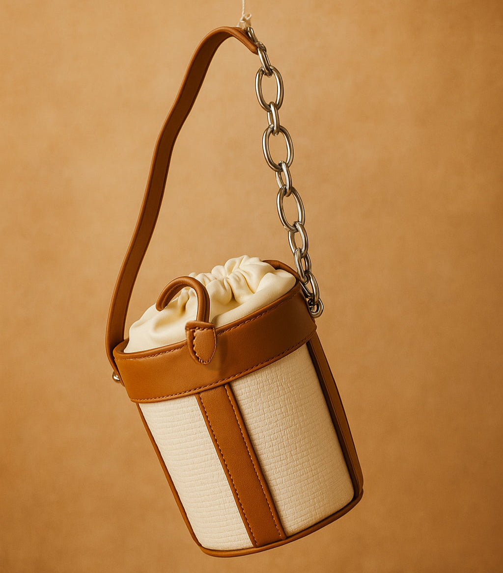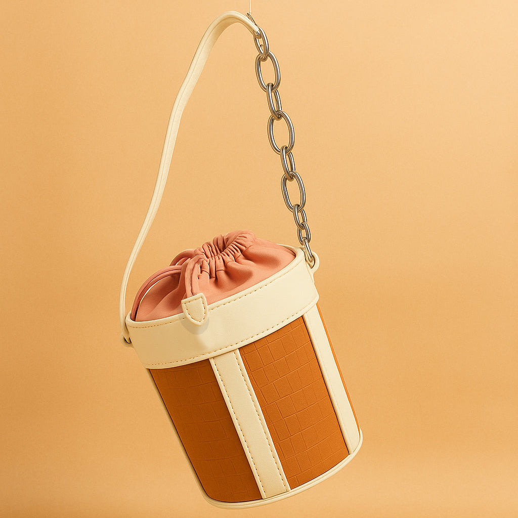 Luxury Leather Dual Shade Barrel Handbag For Female